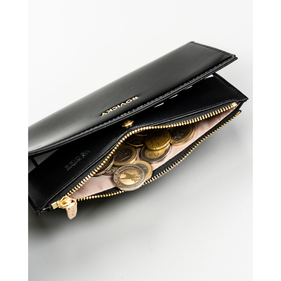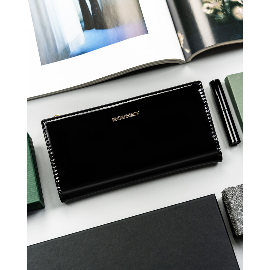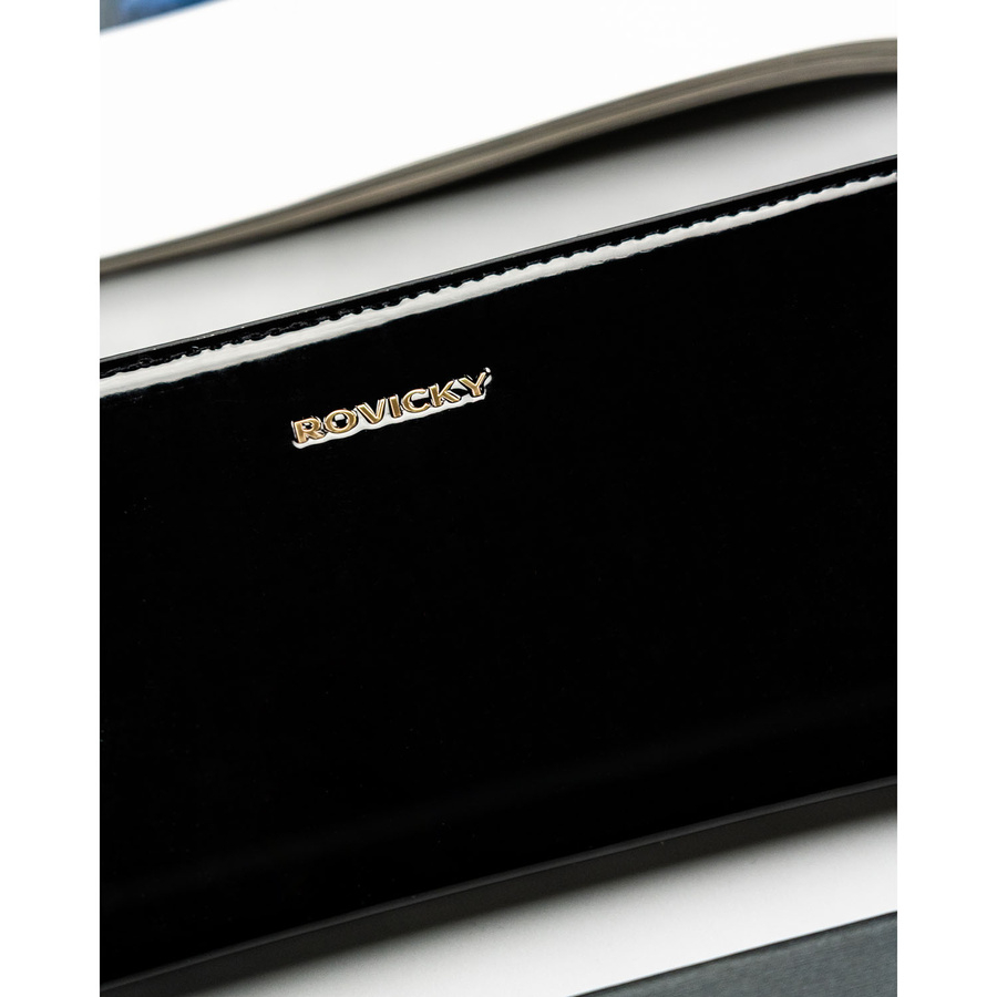 Szukasz portfela, który będzie jednocześnie elegancki, pojemny i wygodny w codziennym użytkowaniu? Ten model ROVICKY to stylowa portmonetka stworzona z myślą o kobietach ceniących funkcjonalność, jakość i klasyczne wzornictwo. Lakierowane wykończenie nadaje mu luksusowego charakteru, a starannie dopracowany układ wnętrza pozwala zachować idealny porządek.
