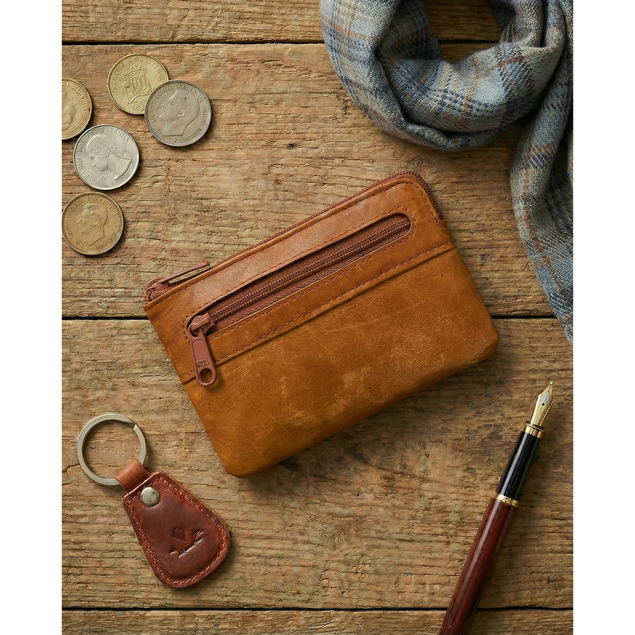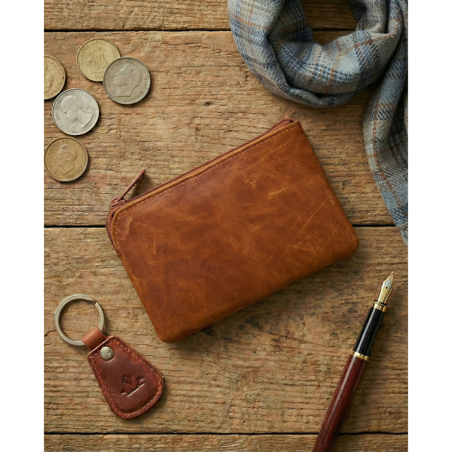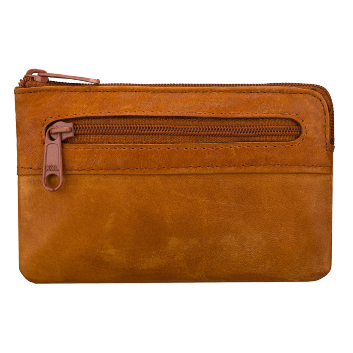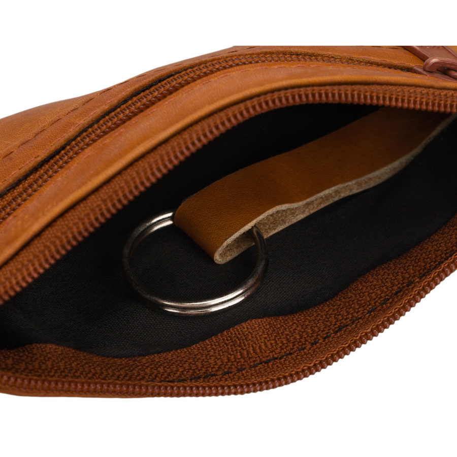 Skórzane etui na klucze w jasnobrązowym kolorze zamykane suwakiem