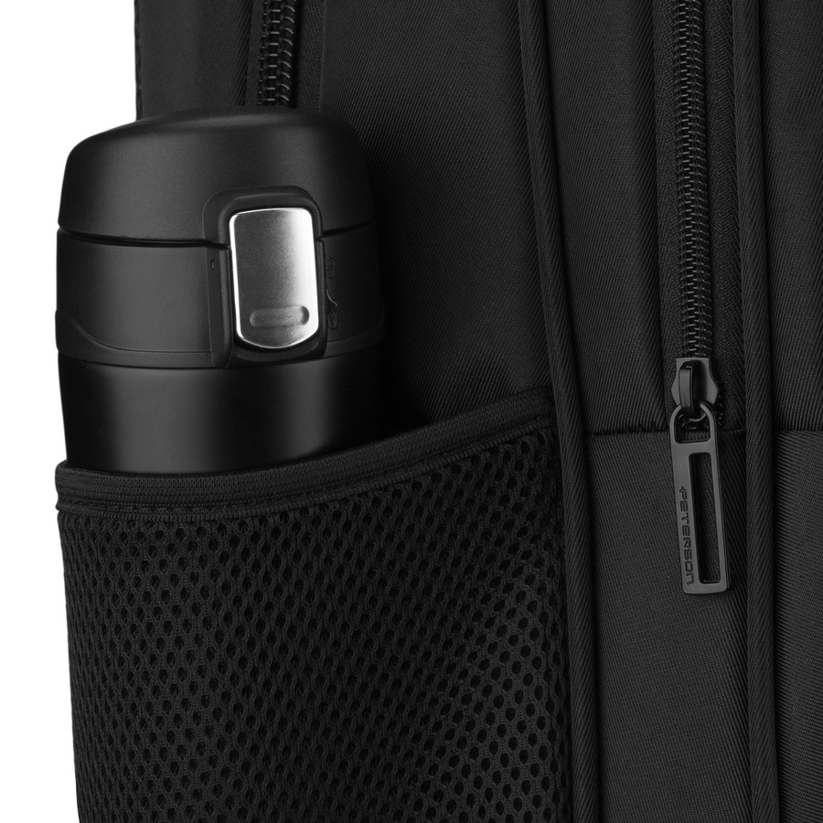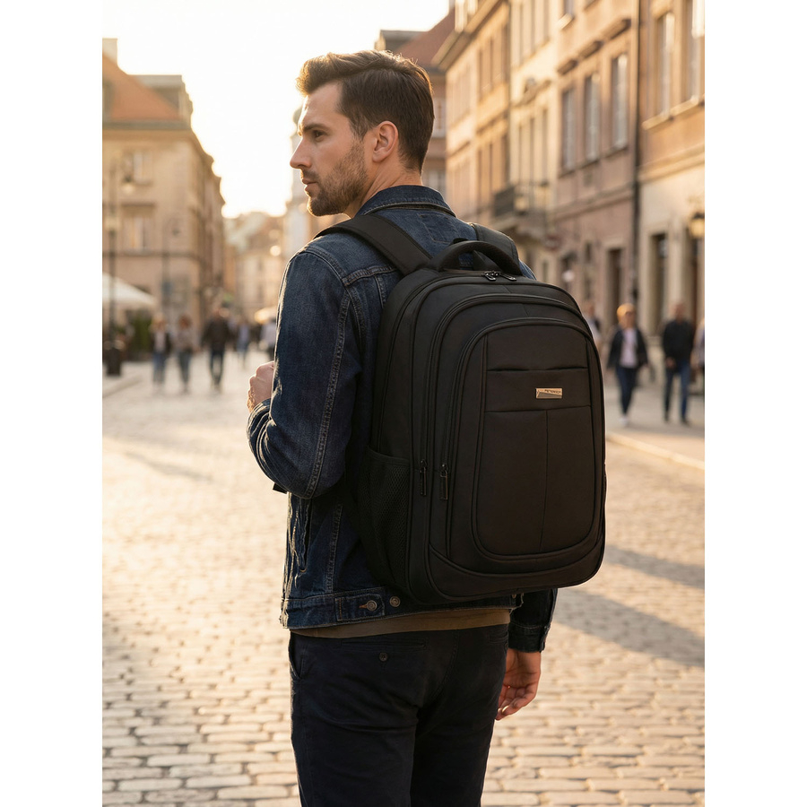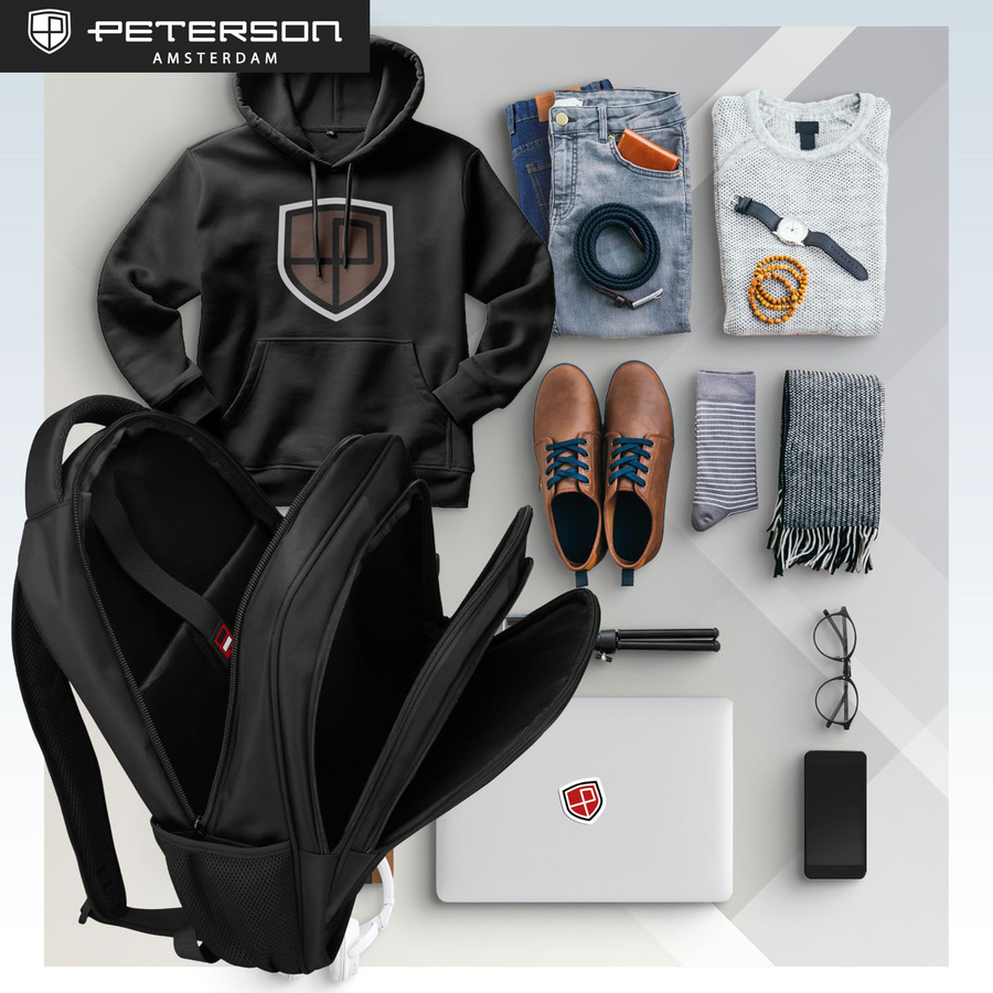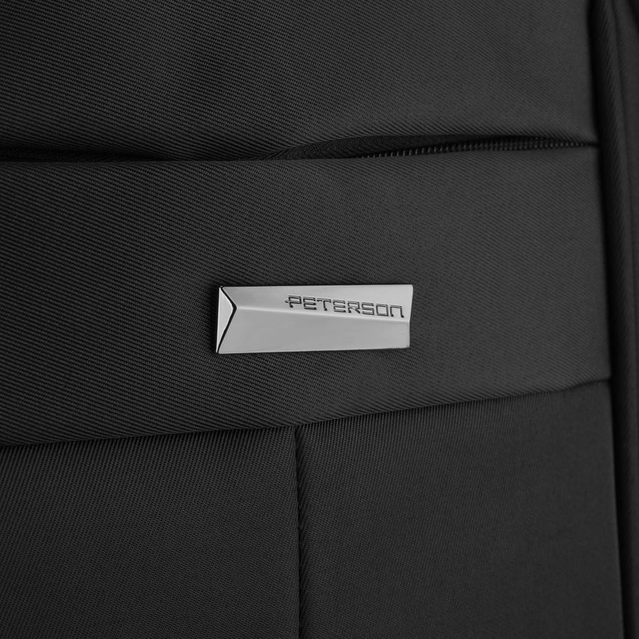 Miejski, pojemny plecak z poliestru w czarnym kolorze zawieszony na regulowanych szelkach - Peterson