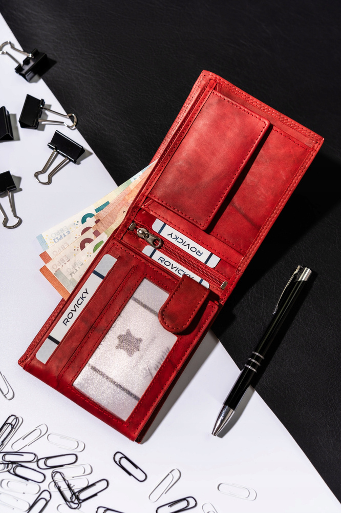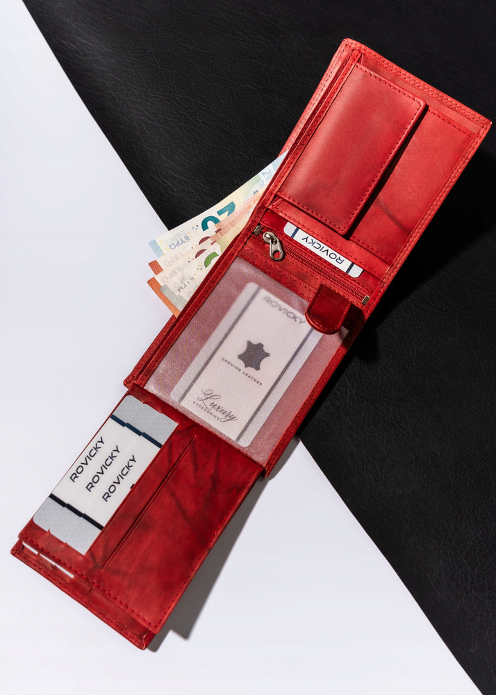 Interior funcțional | Interiorul portofelului conține numeroase compartimente și buzunare. Amenajarea interioară bine gândită facilitează organizarea și oferă acces comod;