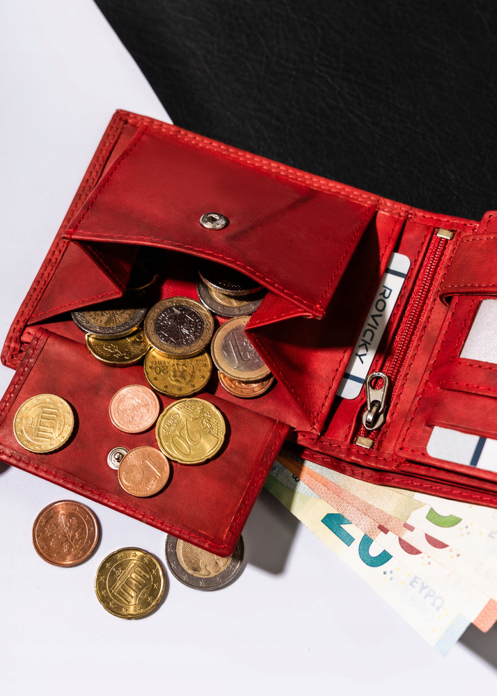 Un buzunar special pentru monede închis cu un zăvor vă permite să vă depozitați în siguranță monedele.