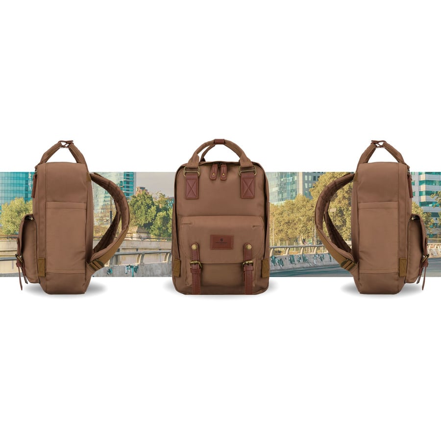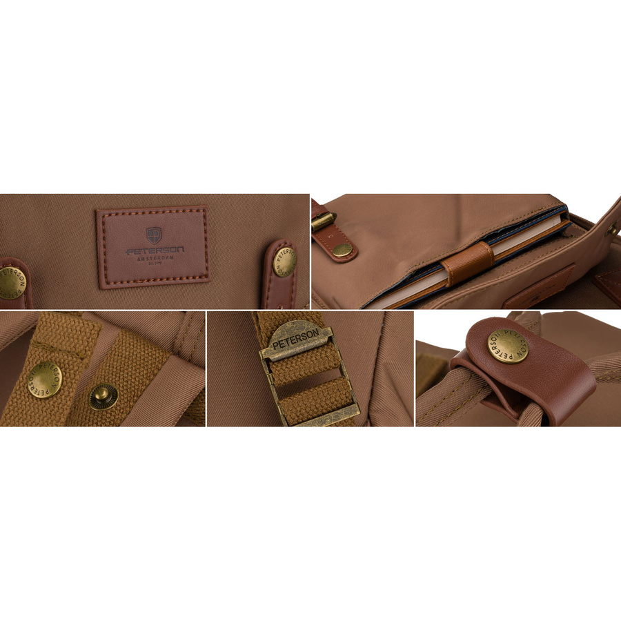 Rucsac de damă din poliester și piele ecologică maro, cu un singur compartiment - Peterson