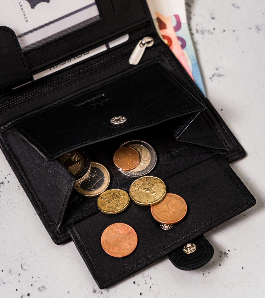 Puteți pune o sumă satisfăcătoare de numerar în buzunarele pentru bancnote și monede.