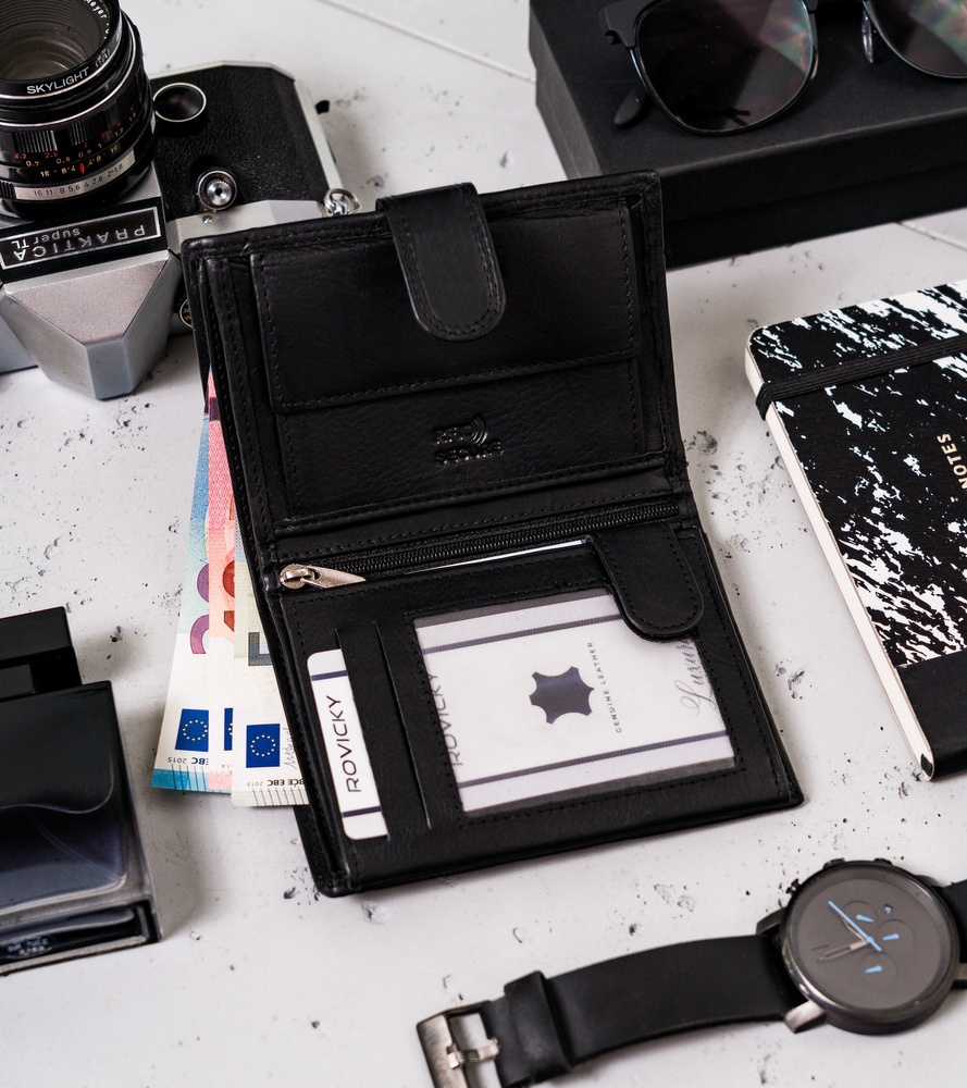 Design clasic | Portofel pentru bărbați într-o culoare neagră universală;