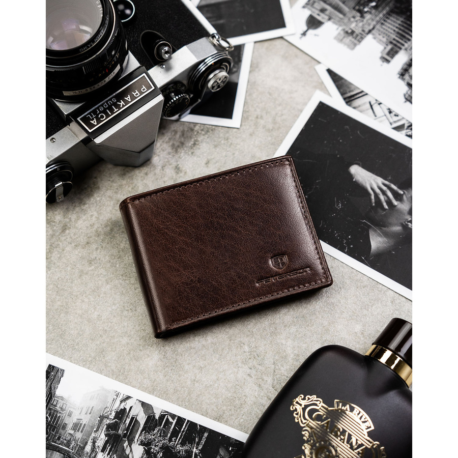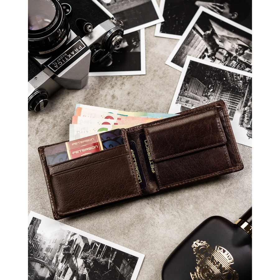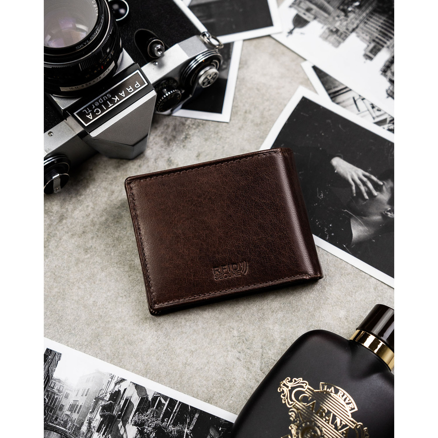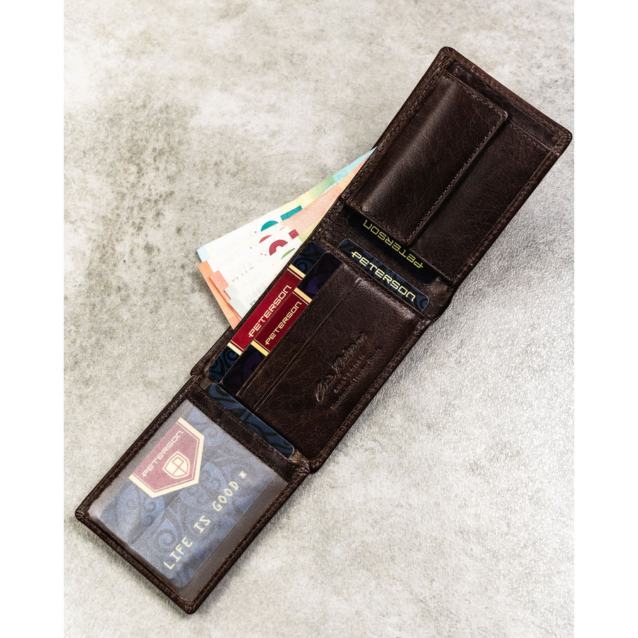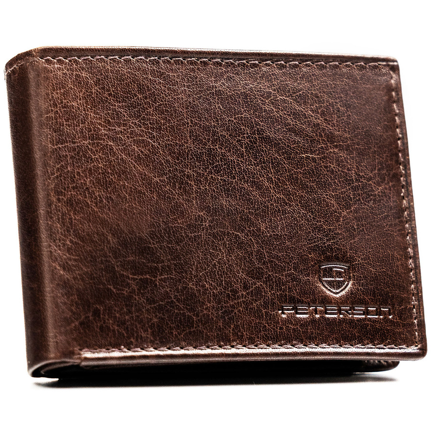 Brązowy portfel męski ze skóry naturalnej wyposażony w system RFID - Peterson