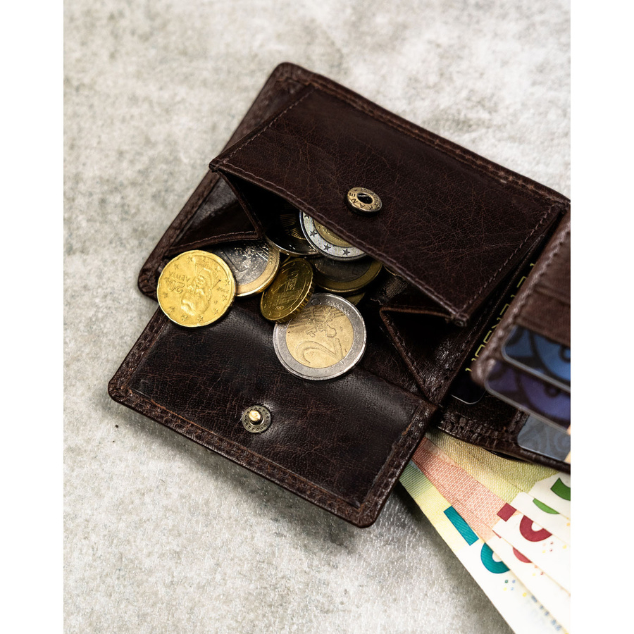 • Kompaktowy i wygodny | Niewielkie wymiary sprawiają, że portfel doskonale mieści się w małych saszetkach. Z powodzeniem można nosić go również w kieszeni, bez uczucia dyskomfortu.