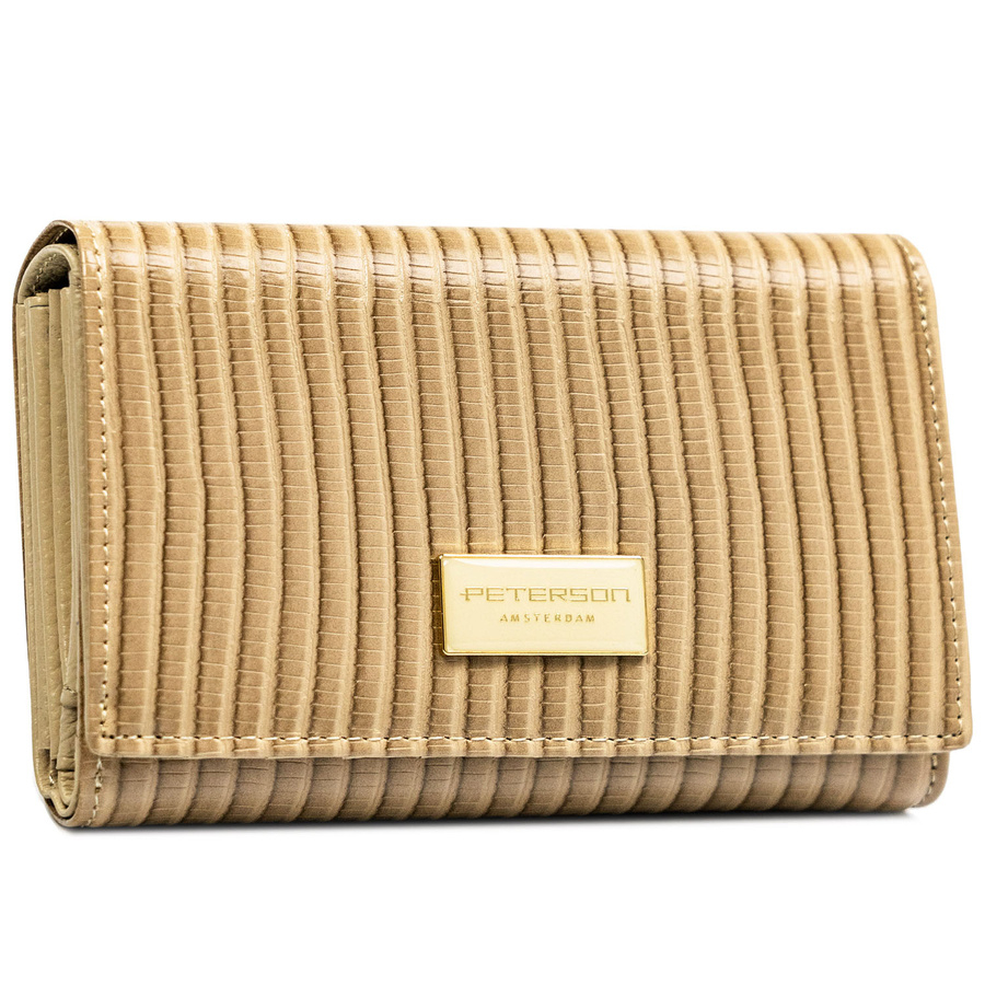 Portfel damski ze skóry naturalnej i ekologicznej w beżowym kolorze ze wzorem plecionki - Peterson