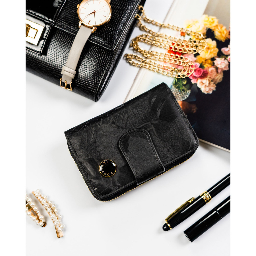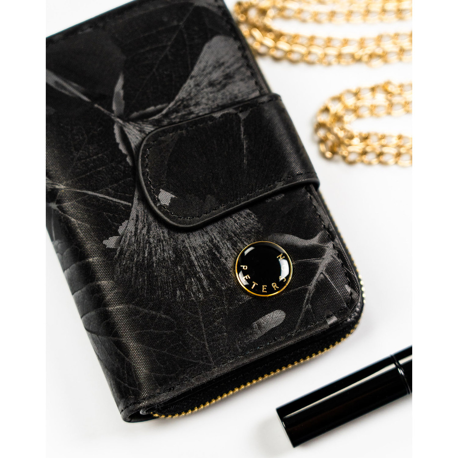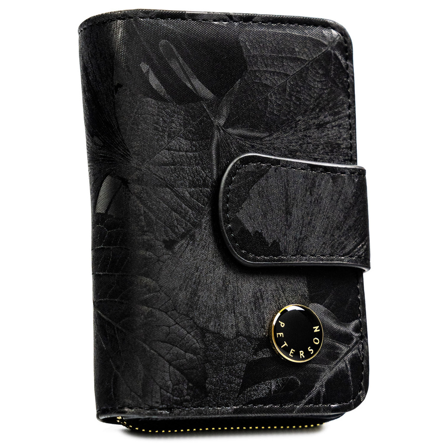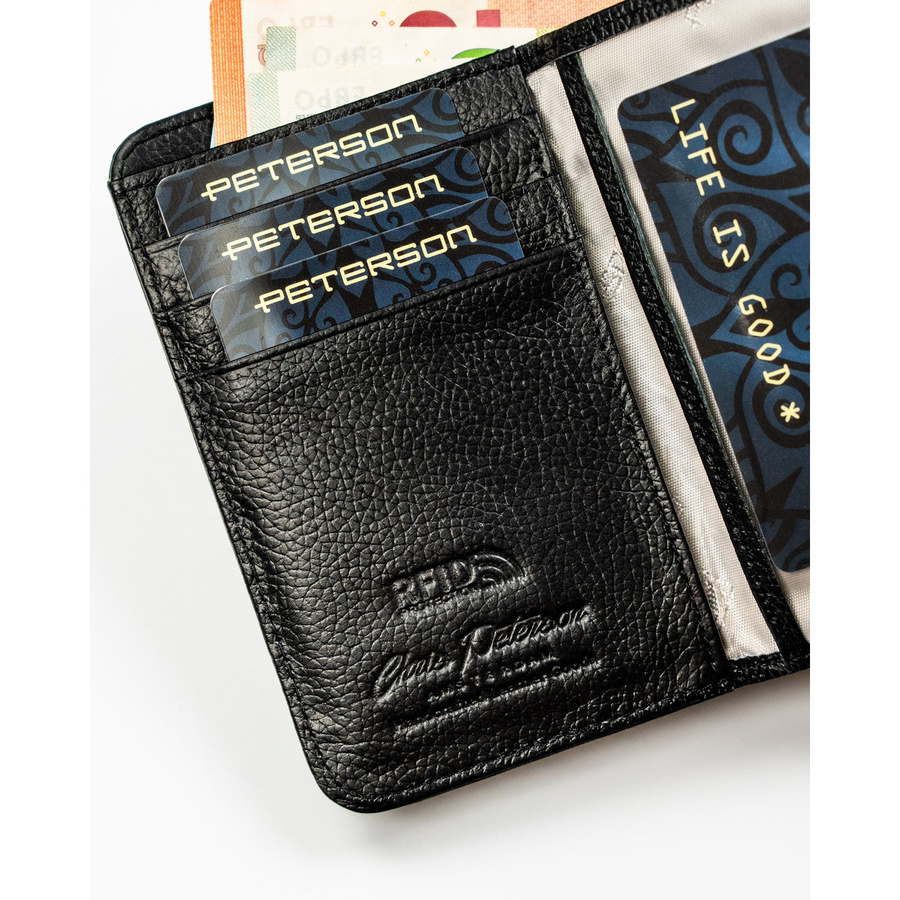 Portfel w orientacji pionowej wykonany ze skóry naturalnej i ekologicznej w czarnym kolorze - Peterson