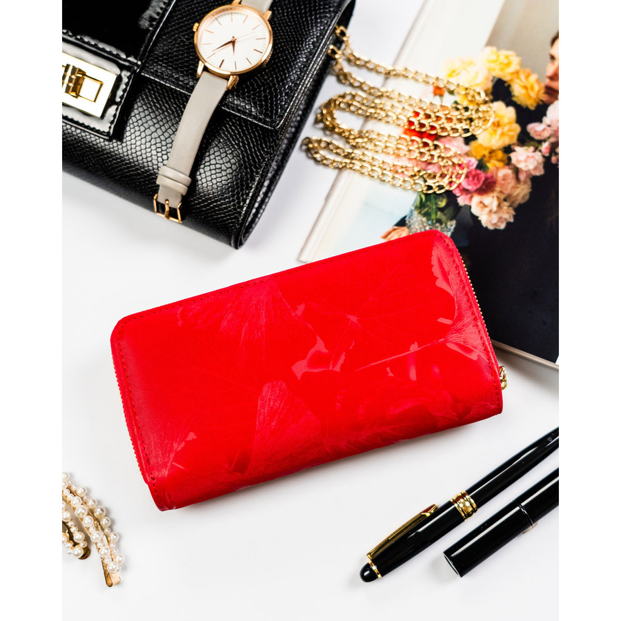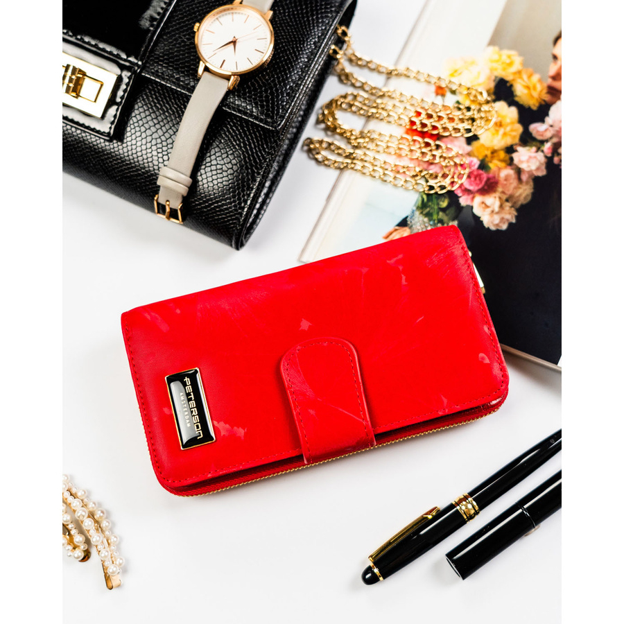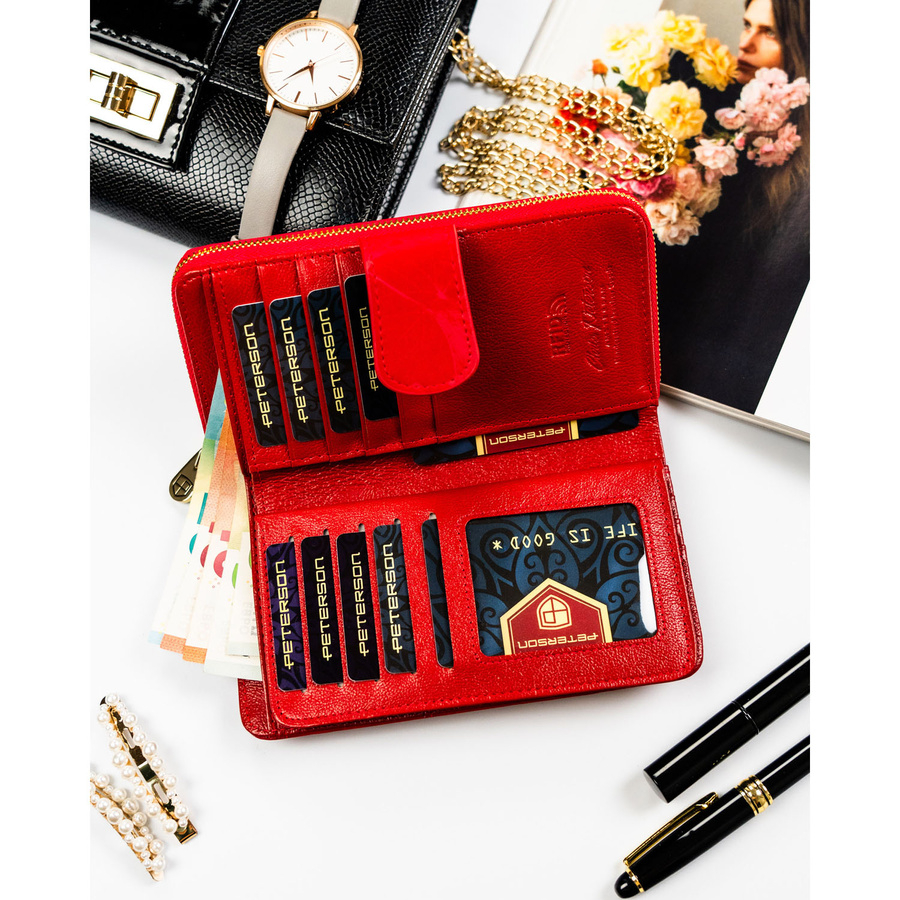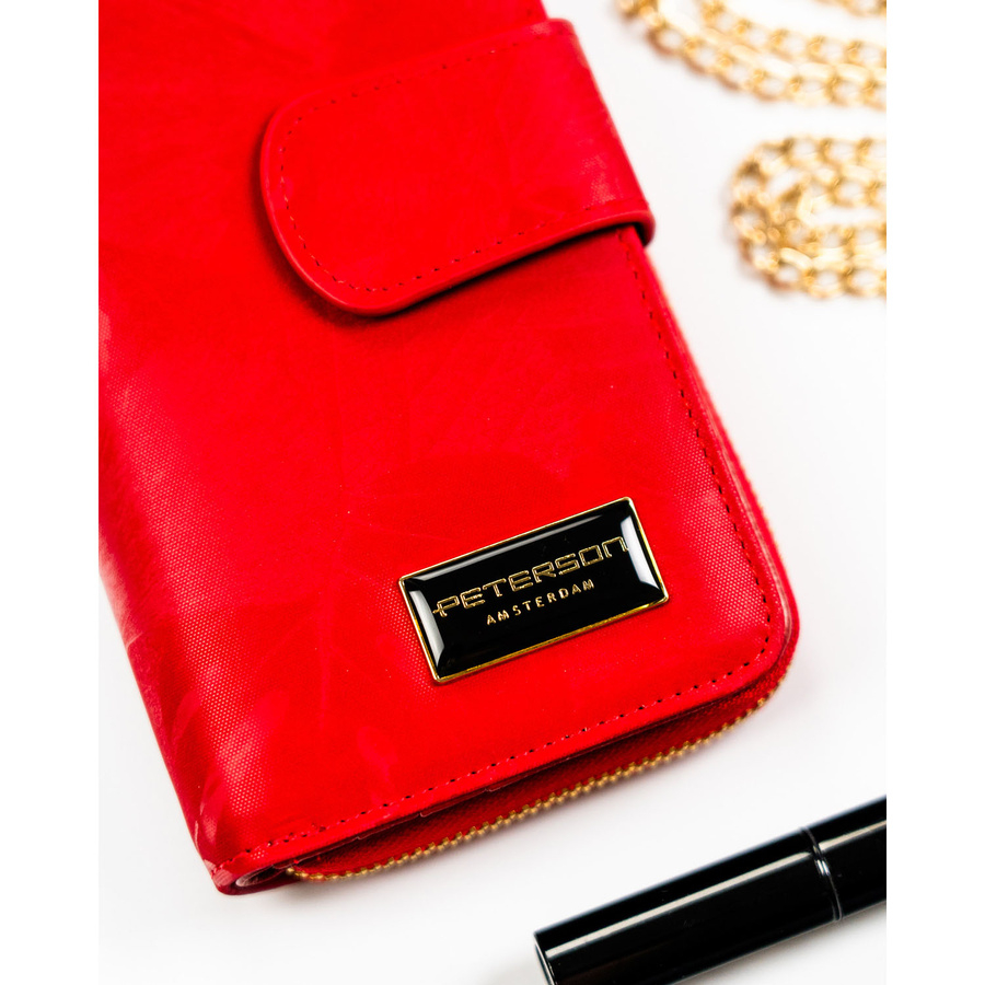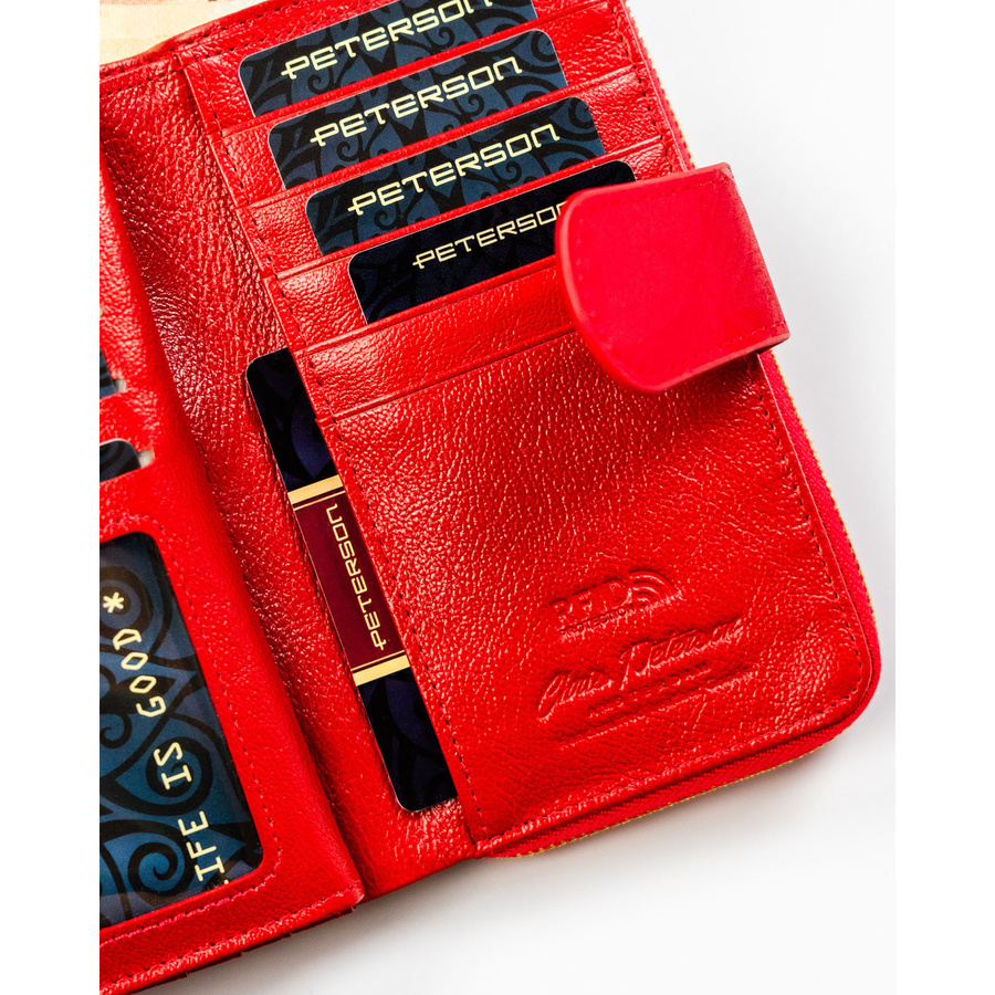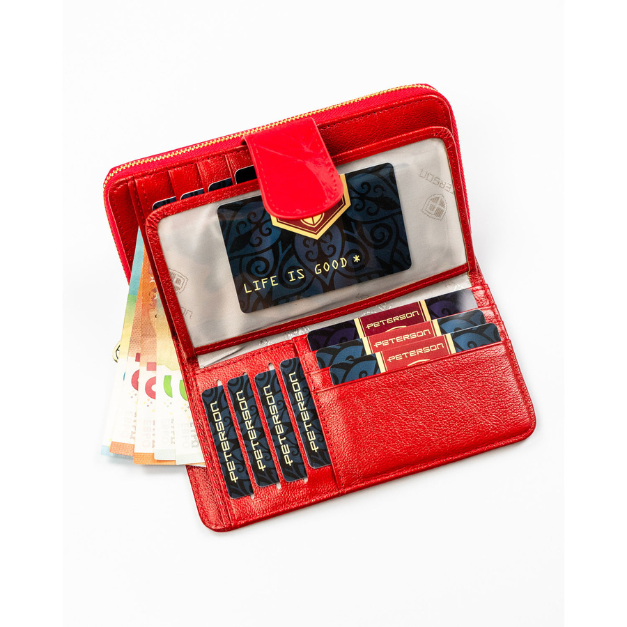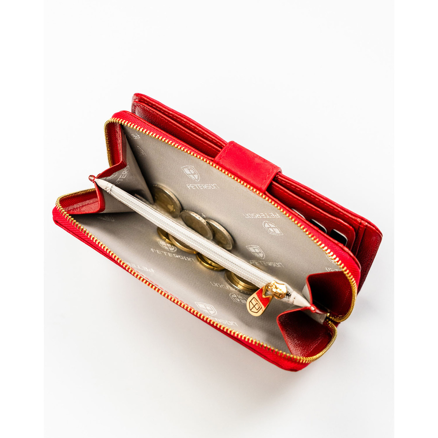 Czerwony portfel w orientacji pionowej wykonany ze skóry naturalnej i ekologicznej - Peterson