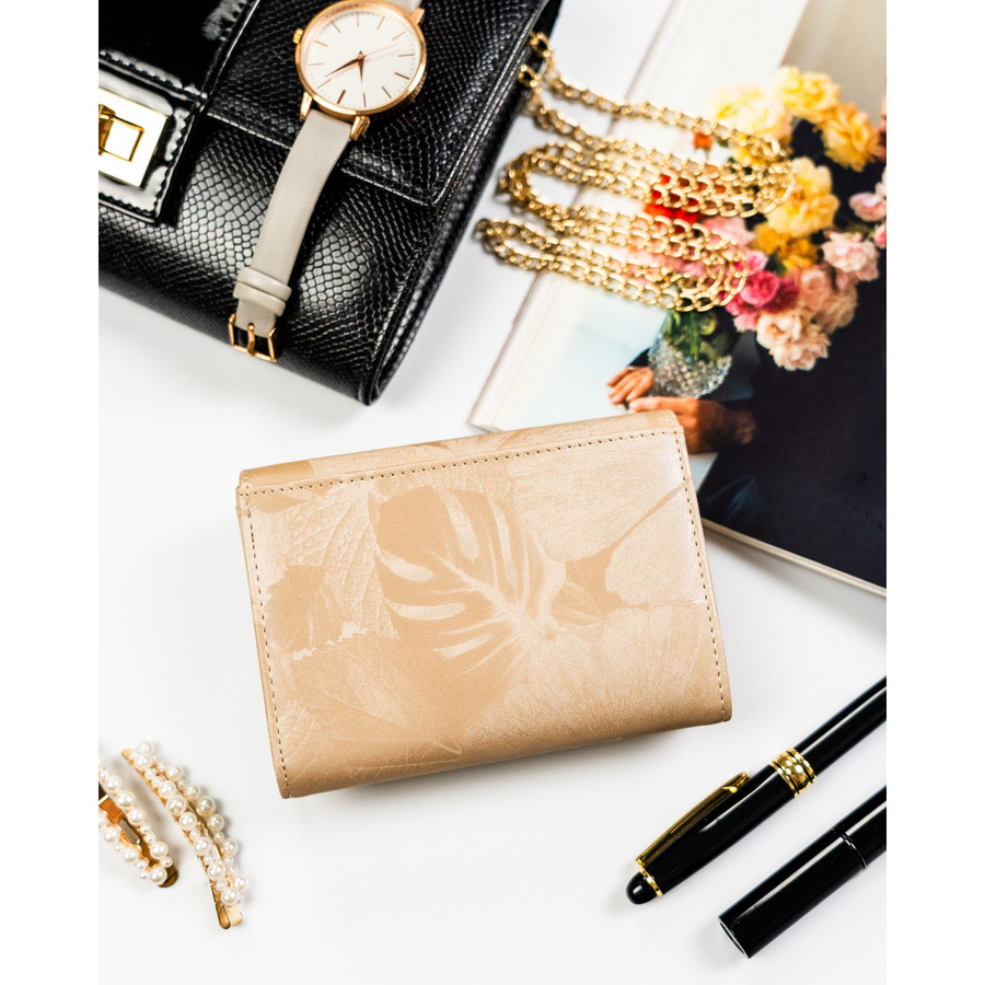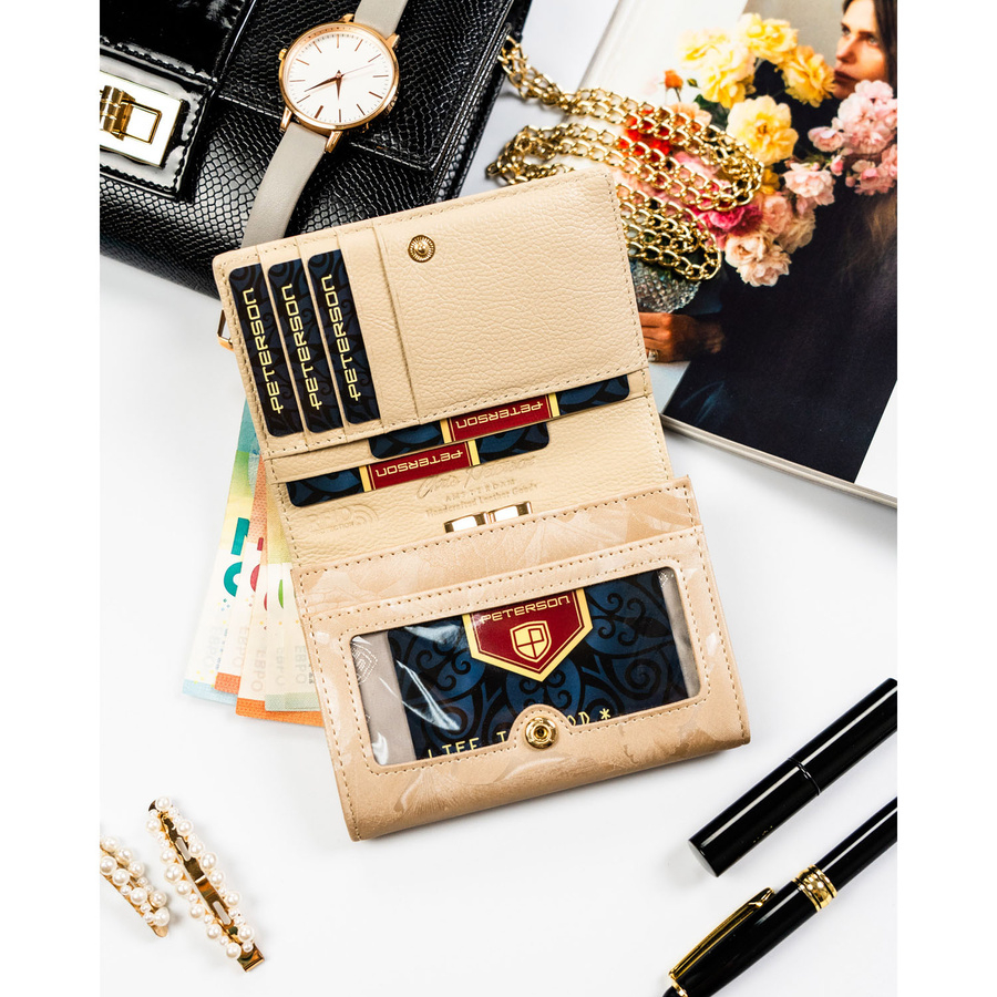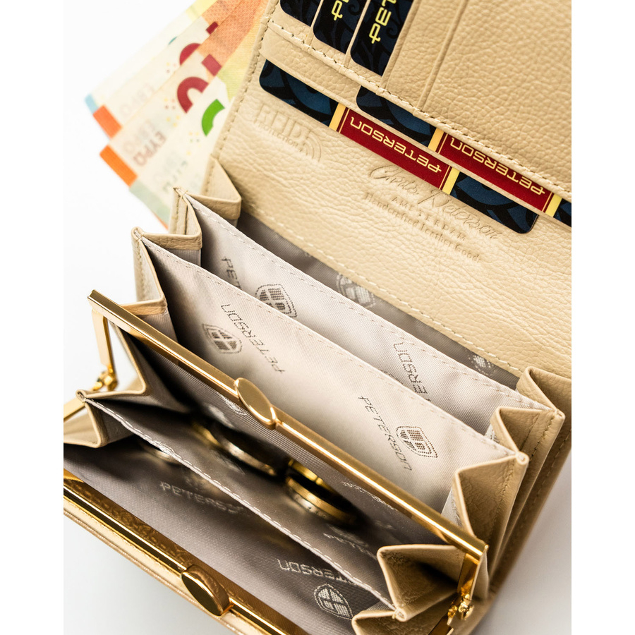Beżowy portfel damski ze skóry naturalnej i ekologicznej z systemem RFID - Peterson