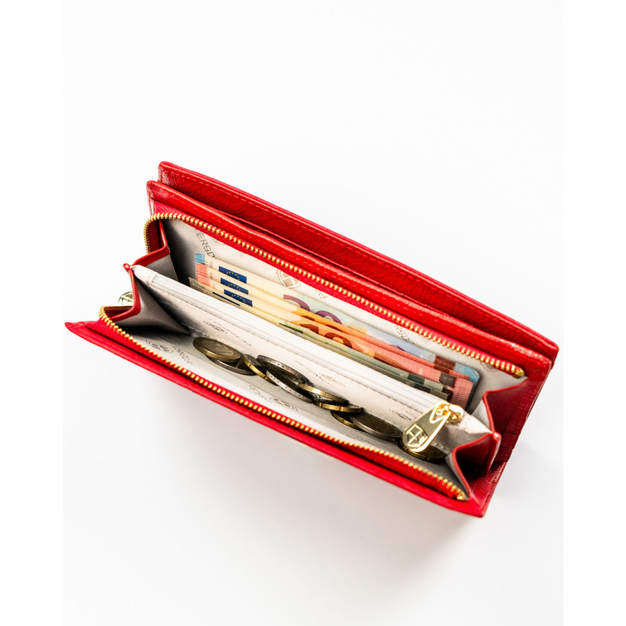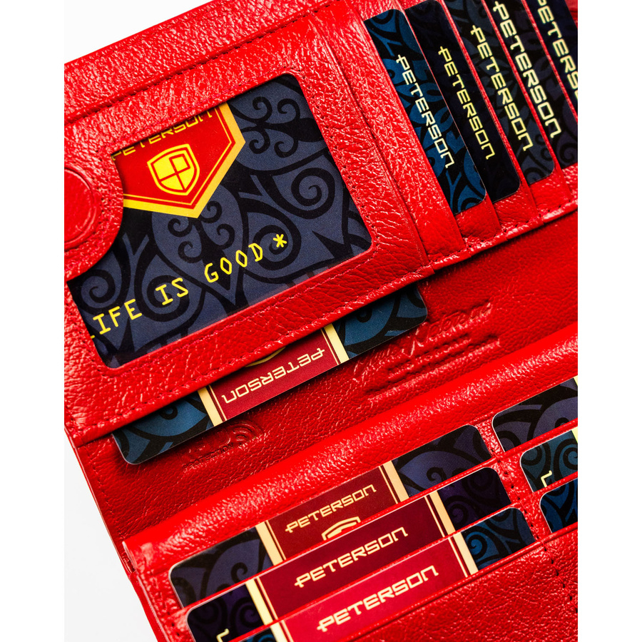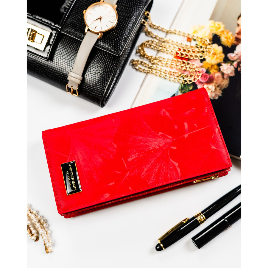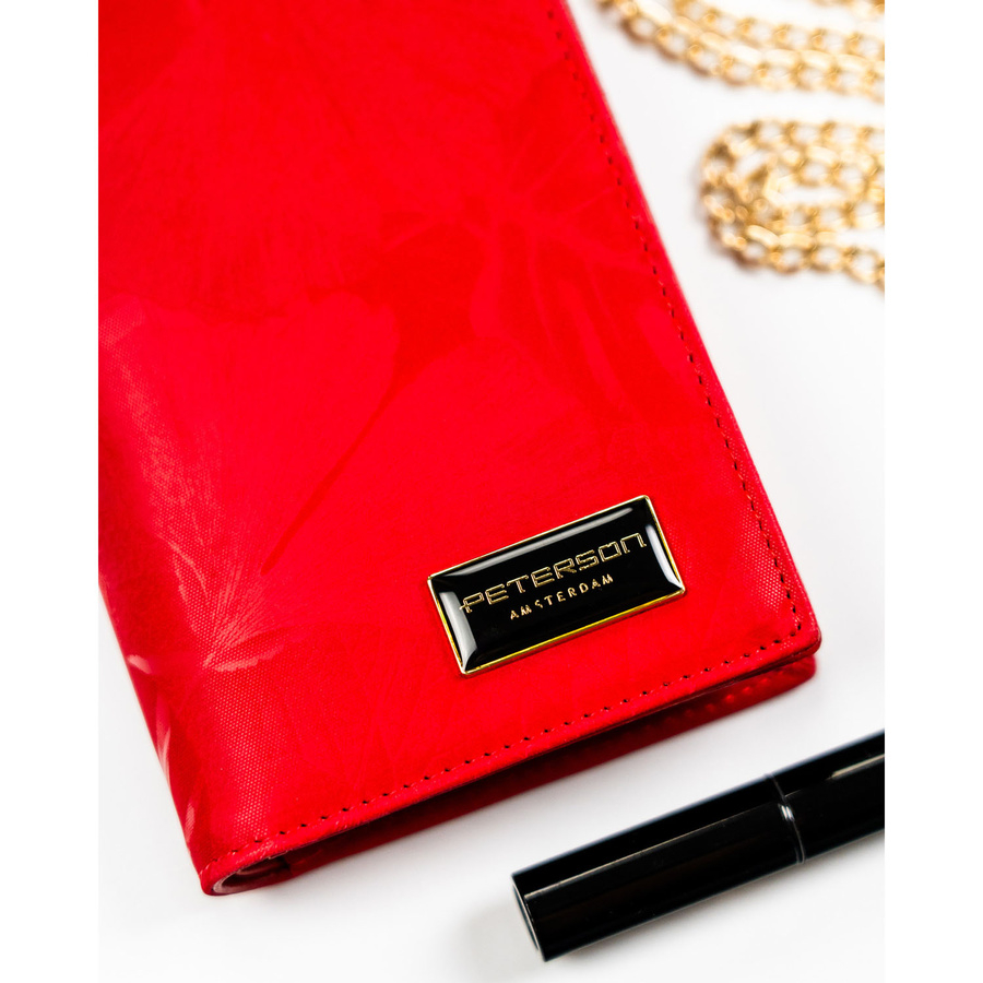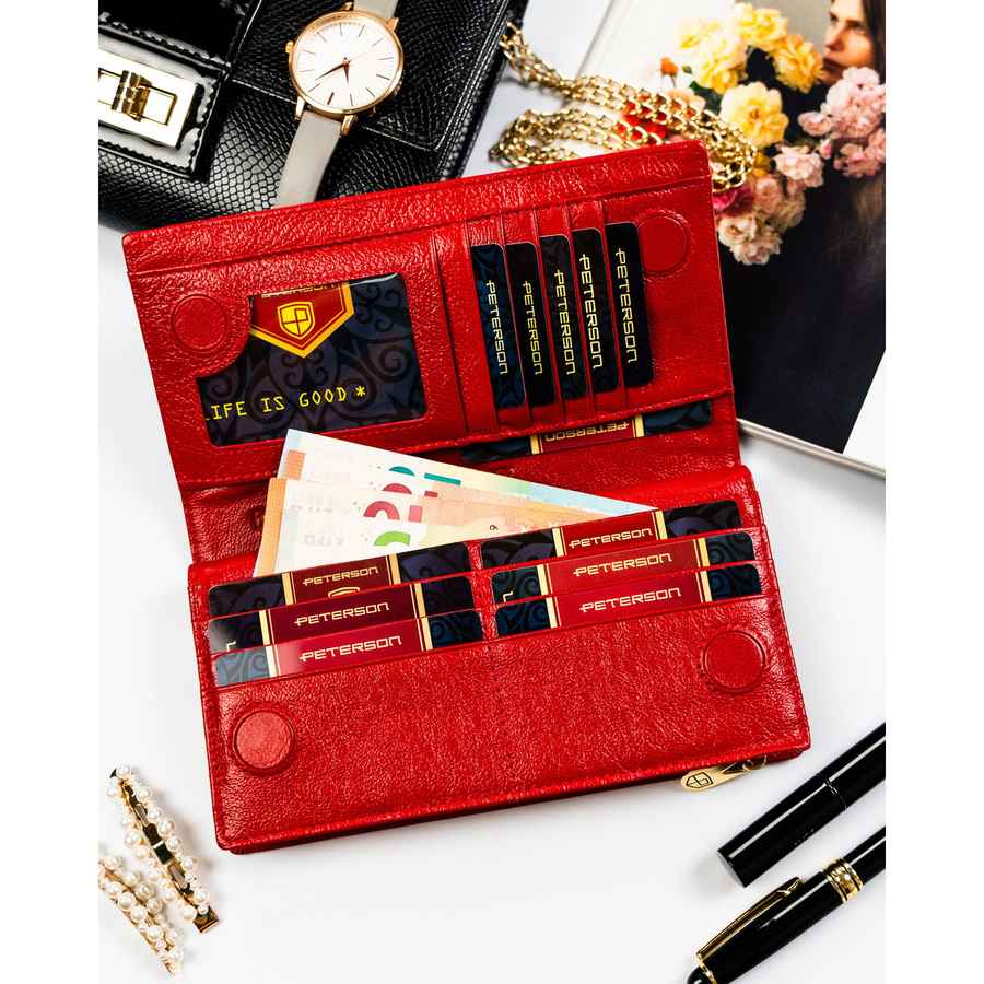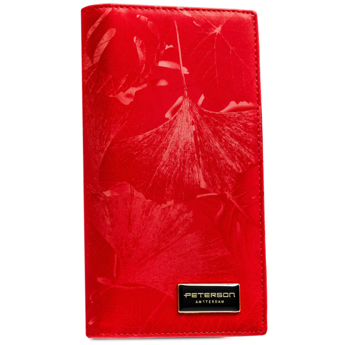 Duży, czerwony, pionowy portfel damski zamykany na magnes i suwak - Peterson