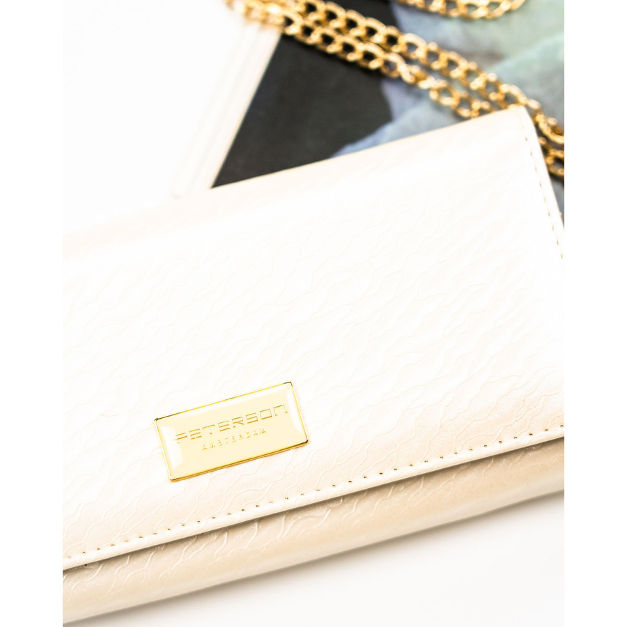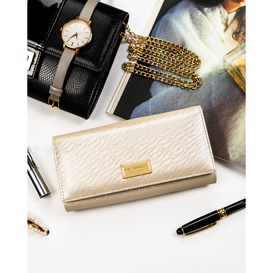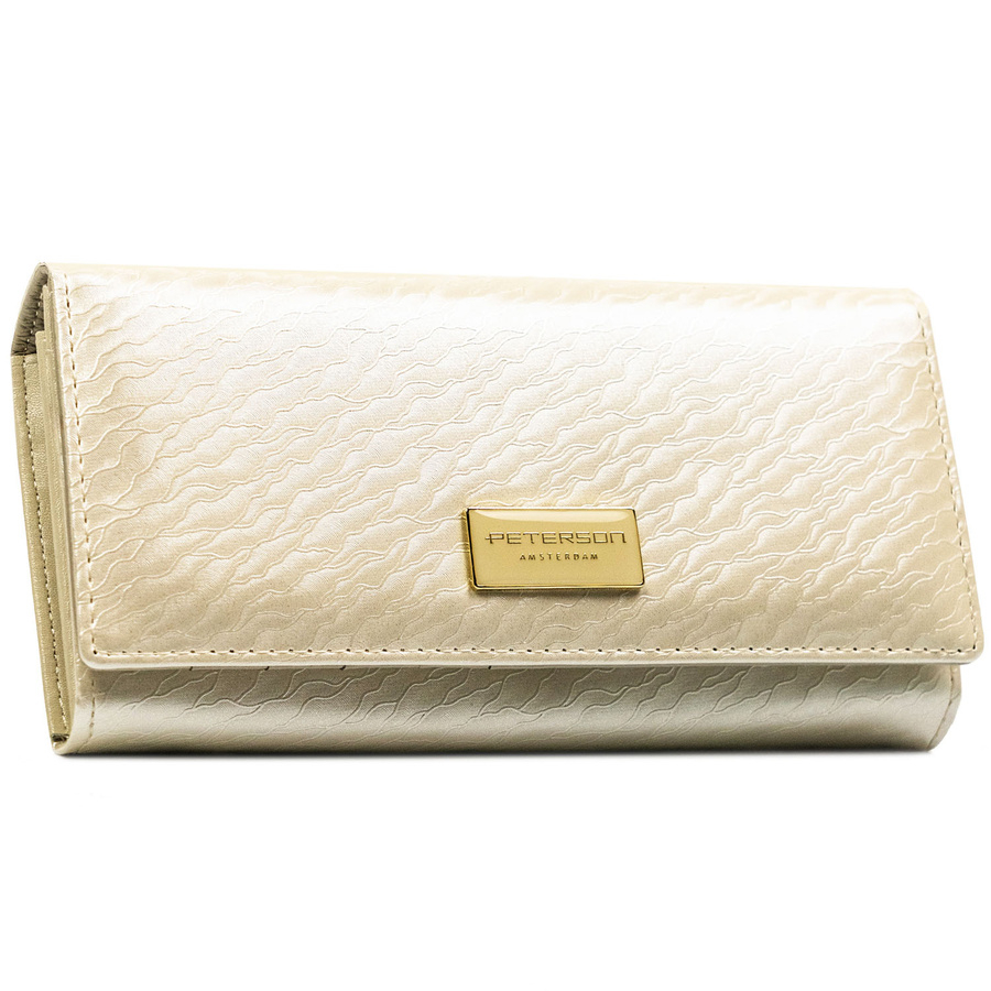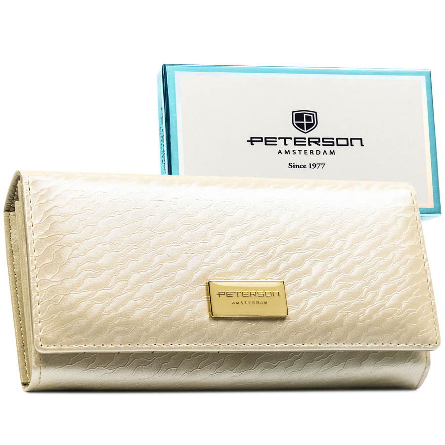 Portfel damski w kolorze ecru zamykany na zatrzask, w środku kieszonka na suwak - Peterson