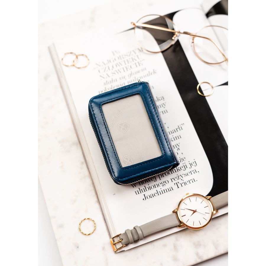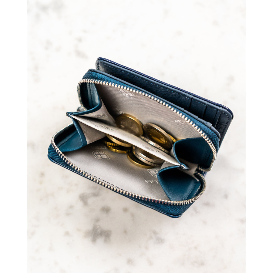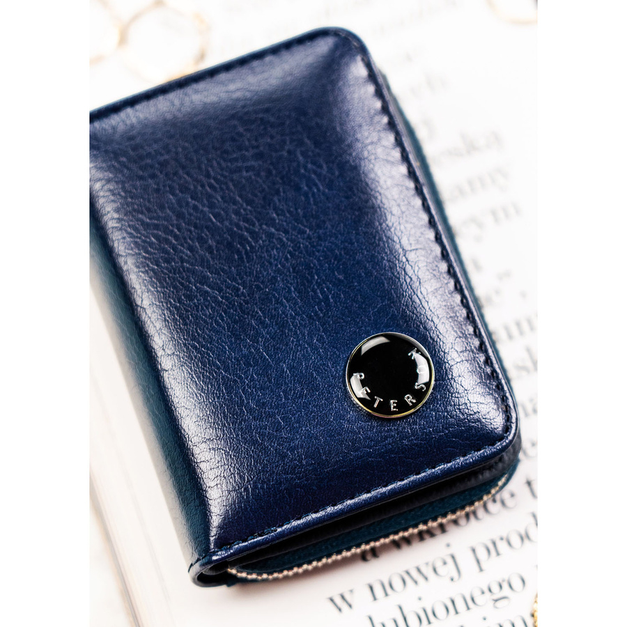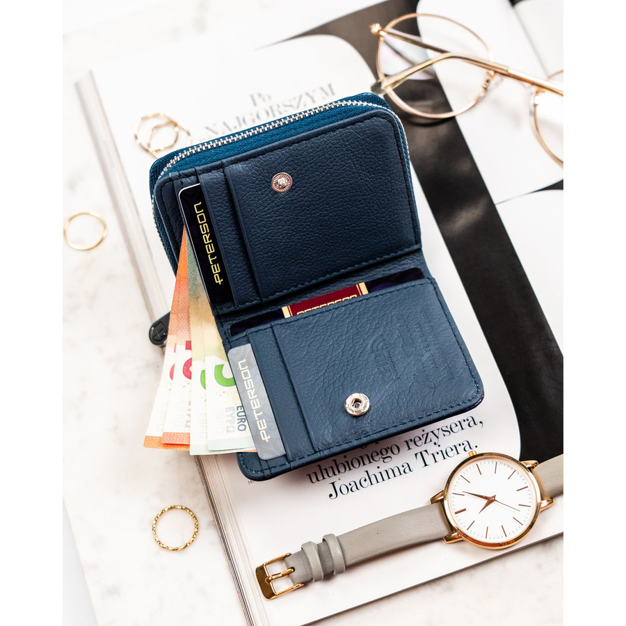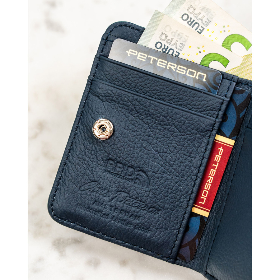 Portofel mic de damă din piele naturală și ecologică, bleumarin - Peterson
